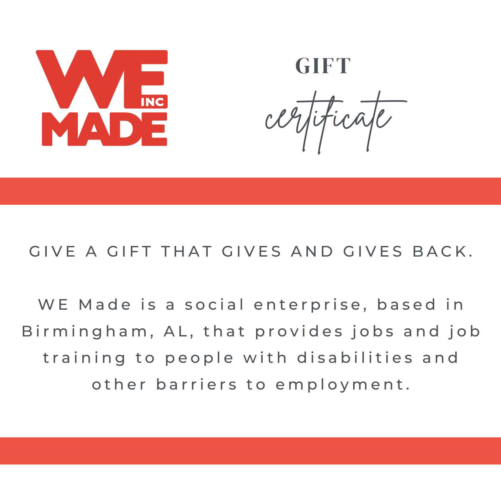 Want to share the gift of our products with a purpose? Purchase a WE Made gift card!